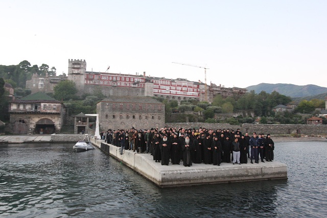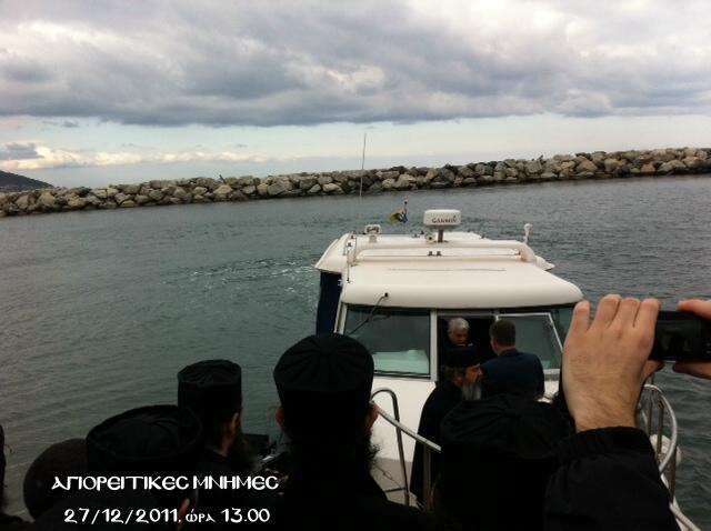 Πλήθος κόσμου, μοναχών και λαικών, τον αποχαιρέτησε κατά την έξοδό του από το Άγιον Όρος με σκάφος του Λιμενικού: